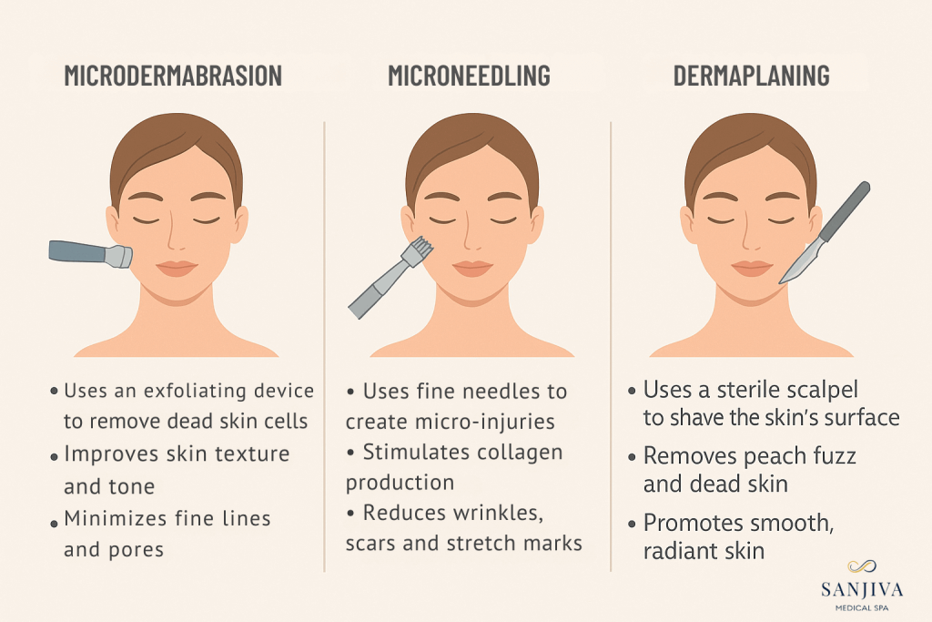If you’ve ever wondered which professional skin treatment is best for smoother, brighter, and healthier-looking skin, you’re not alone. Patients often ask us about the differences between microdermabrasion, microneedling, and dermaplaning and which one is best for their unique skin goals.